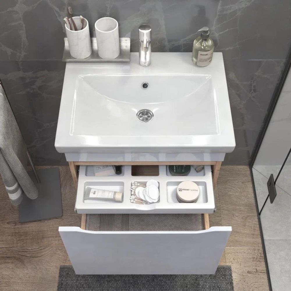 Тумба с раковиной подвесная VIGO Grani 057 дуб золотой, 60 см. Раковина в комплекте.