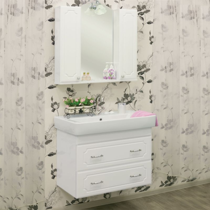 Тумба с раковиной Sanflor Ксения 80 Н0000000125 подвесная, с двумя выдвижными ящиками.