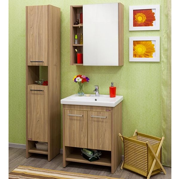 Тумба Sanflor Мехико 70 Н0000001167. Подходит для ванной комнаты в современном стиле и в стиле кантри. Матовое покрытие под дерево. - Габариты тумбы: 71x44,5x76 см. - Материал каркаса и фасада: ЛДСП. - Благодаря влагостойкой поверхности тумба долго служит в помещениях с повышенной влажностью. - Ламинированное покрытие. - Механизм доводчика. - Направляющие Hettich. - Монтаж: напольный. - Цвет: швейцарский вяз. - Две распашные дверцы, полочки. В комплекте поставки: тумба.