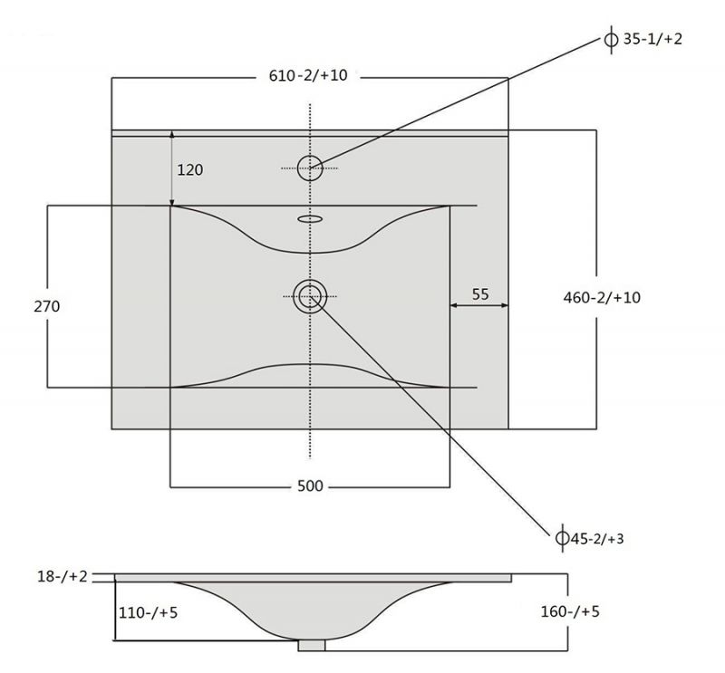 - Размер (ШхДхВ): 61 x 46 х 16 см. Глубина чаши: 11 см.