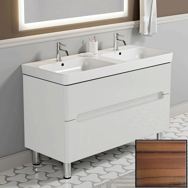 Тумба с двойной раковиной SanVit Форма 120 с фактурой под дерево - стильная и функциональная тумба с закругленными углами фасадов и современным дизайном превосходно дополнит интерьер любой ванной комнаты.