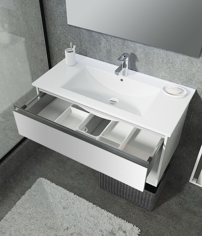 - Один ящик с механизмом полного выдвижения с плавным и бесшумным закрыванием.