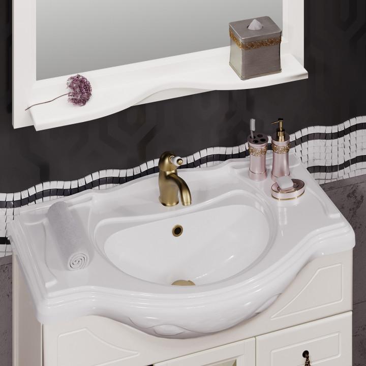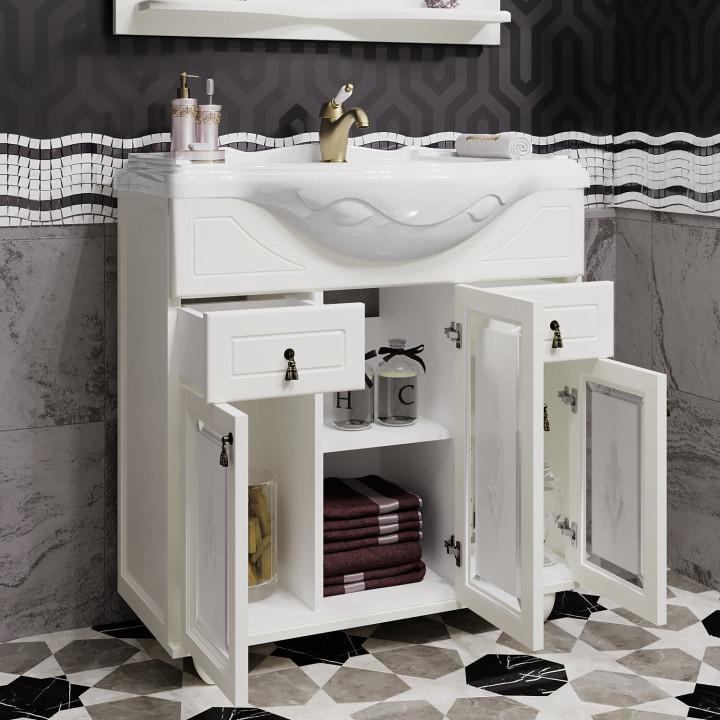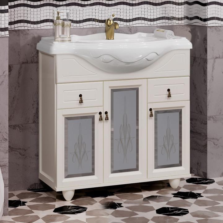 Коллекция мебели для ванной комнаты Тибет представляет собой великолепное сочетание традиционной классики и современного взгляда на ванную комнату. Тумба Тибет отличается своим многообразием в решениях с фасадными дверцами. Комплекты мебели для ванной комнаты коллекции Тибет 55 см, 75 см и 85 см в цветах Орех антикварный, Слоновая кость, Белый матовый предлагаются с фасадами украшенными дверцами с художественным стеклом, декоративной решеткой и объемной глухой дверцей (Тибет 80 белый ясень) .<br>