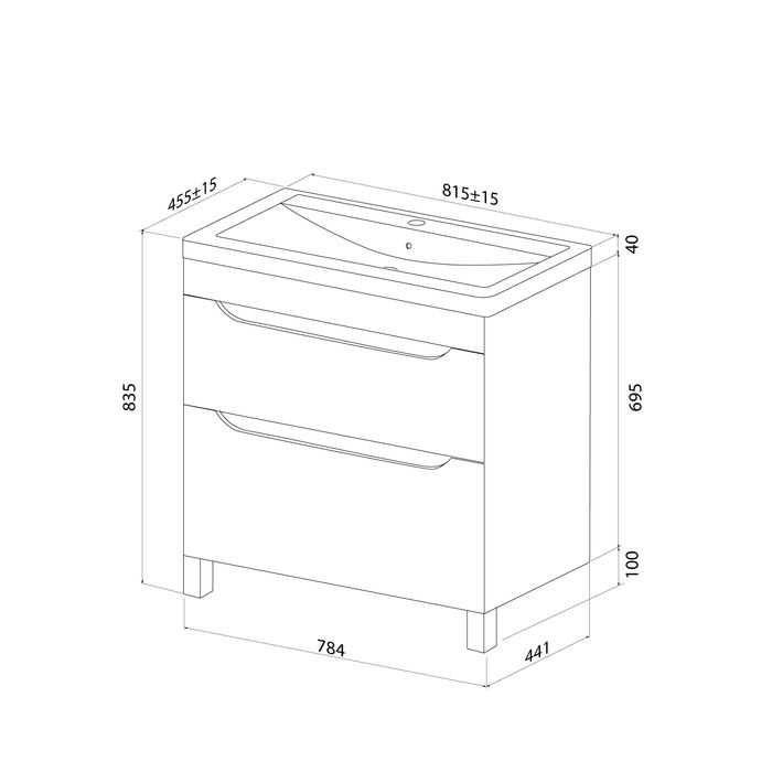 Материал фасадов – МДФ 16 мм, максимально устойчивый к влаге. Детали из МДФ полностью окрашены водостойкой глянцевой эмалью Сarpoly в 6 слоёв внутри и снаружи, что обеспечивает долговечное и износостойкое покрытие сроком службы более 15 лет во влажном помещении ванной (при соблюдении рекомендаций по уходу).