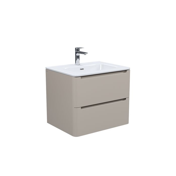 Компактная подвесная тумба с плоским умывальником Edifice в теплом оттенке капучино – воплощение современного минимализма. Мягкие линии корпуса в сочетании с удобными интегрированными ручками выглядят свежо и актуально. Смотрится аккуратно, легко и не усложняет процесс уборки в ванной благодаря подвесной конструкции.