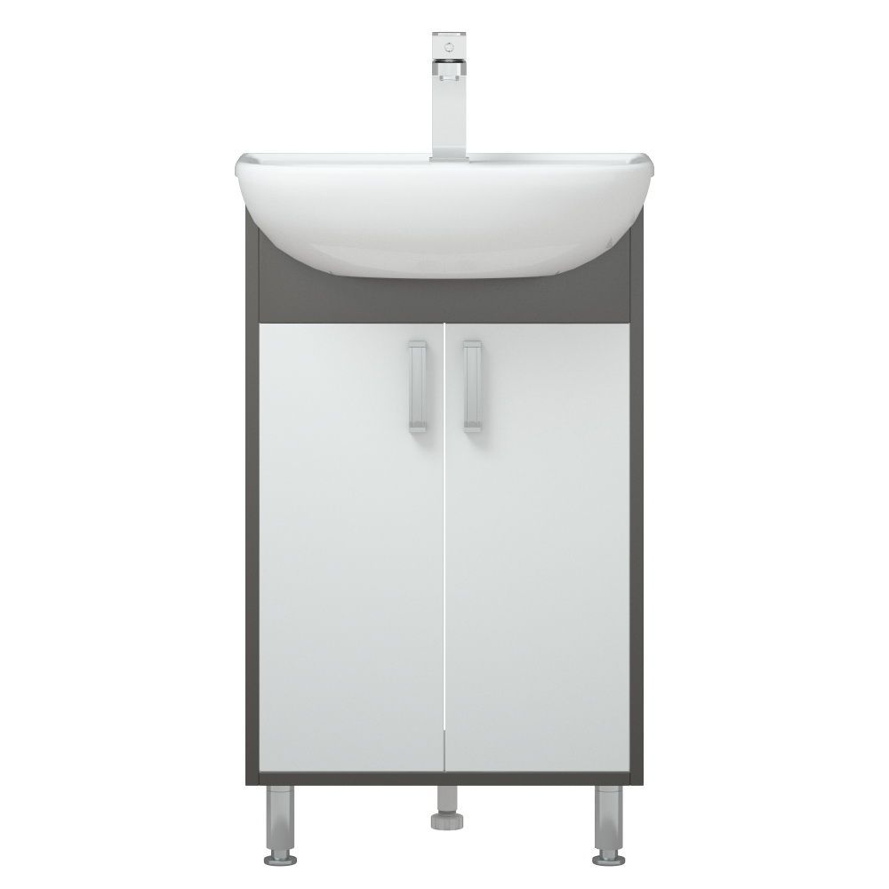 Тумба оснащена двумя распашными дверцами и одной полочкой за ними. У тумбы 2 мет. опоры спереди, сзади 1 пластиковая. У тумбы цветным является кокромысло и кромка с видимой части. В ручку вставлена такая же по цвету кромка, что придает изделию особый шарм. Дверь - крашенная эмалью. Коромысло - МДФ в плёнке.