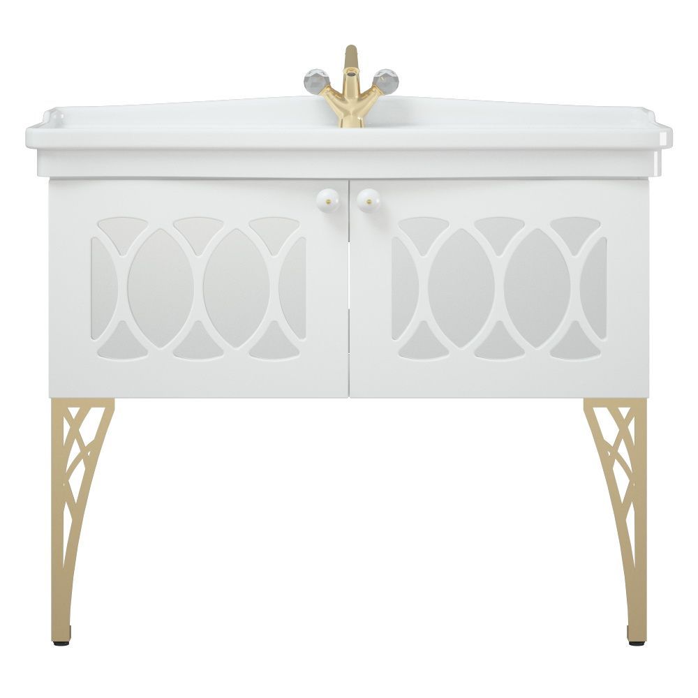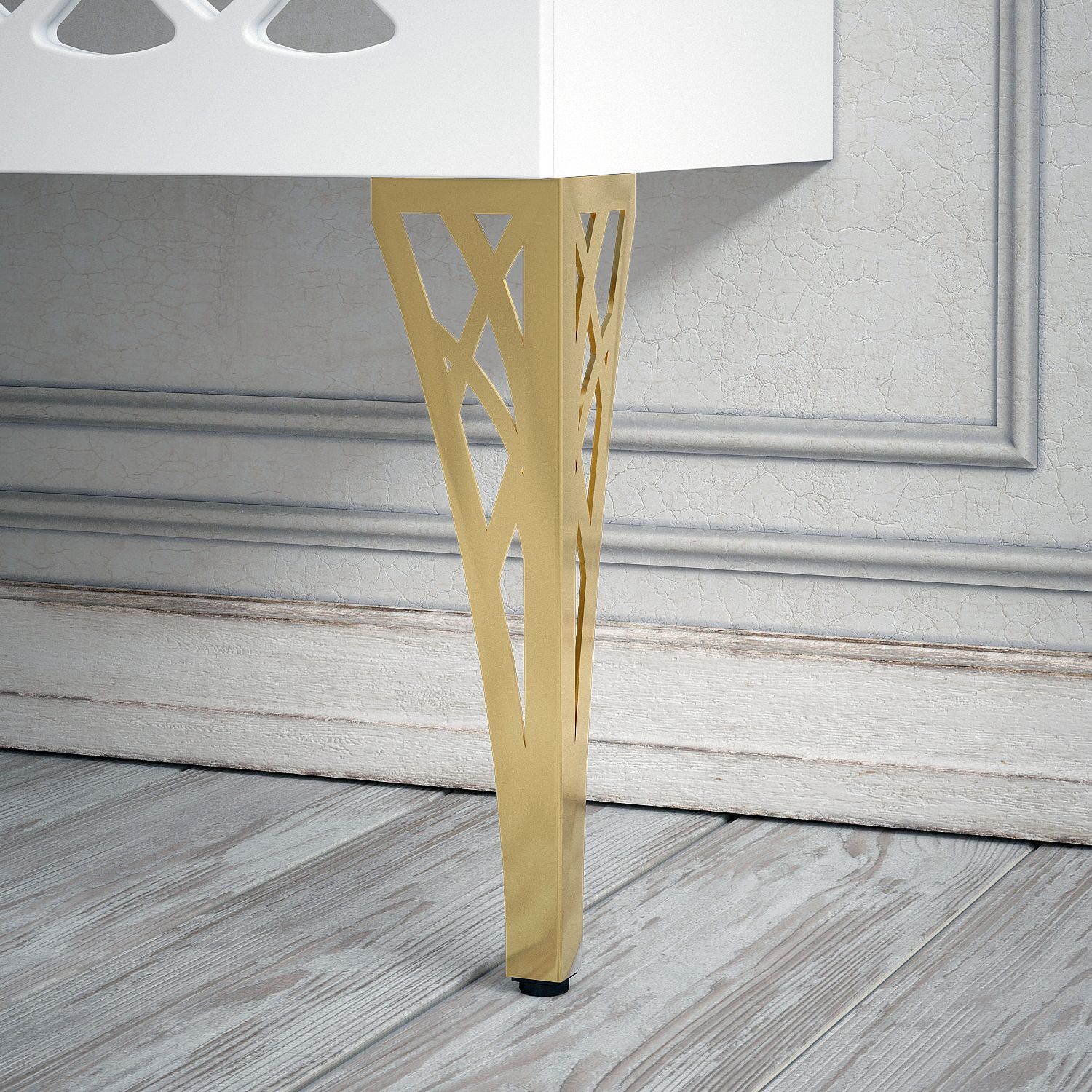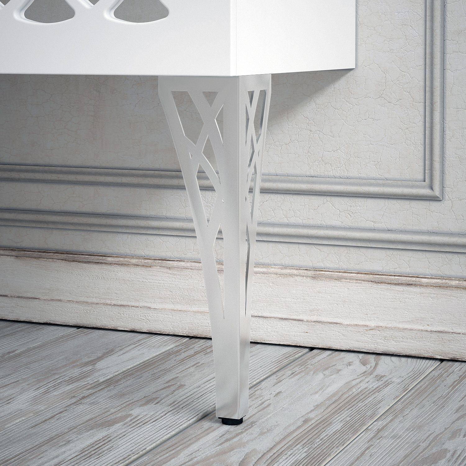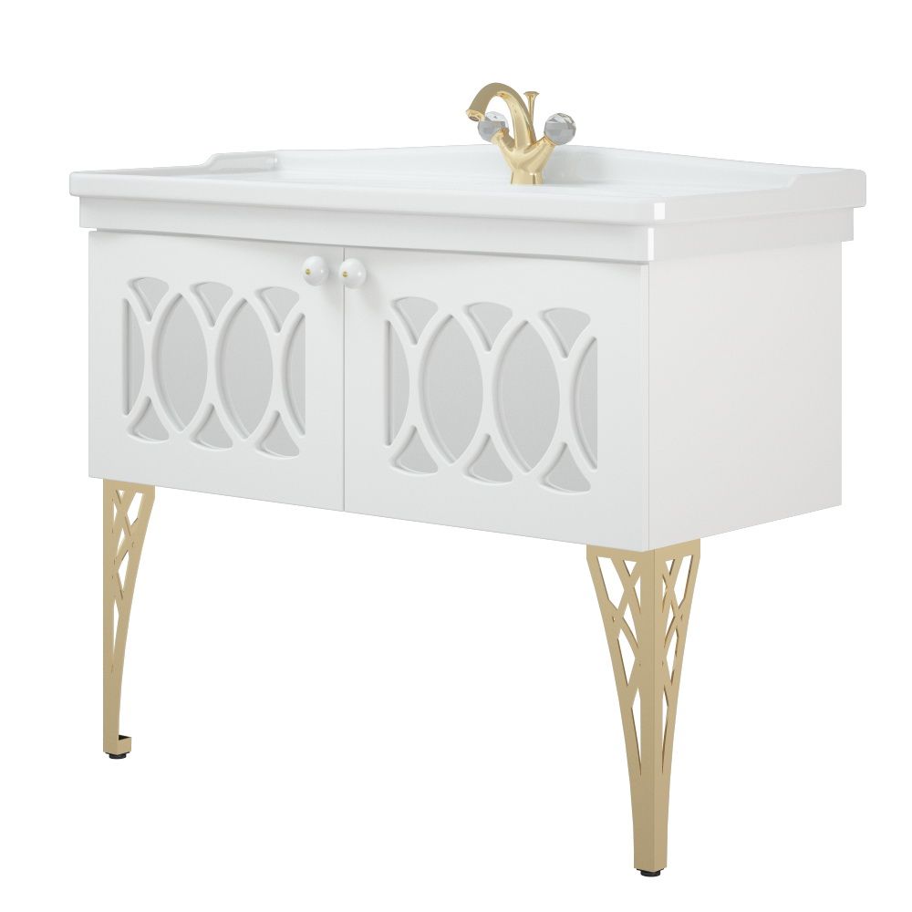 Роскошь версальского дворца у Вас дома! У тумбы 2 распашные двери с фрезеровкой, позади фрезеровки зеркало. Зеркало защищено противоосколочной пленкой. Возможно 2 исполнения тумбы - с опорами и без. Независимо от этого, тумба оснащена подвесами "Scarpi" для крепления к стене.Вся тумба покрашена в матовую белую эмаль.