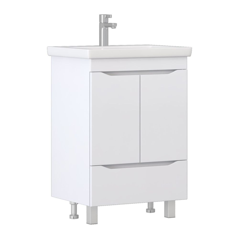 2 дверцы, петли с механизмом доводчика, 1 ящик, выдвижной органайзер для мелочей, направляющие шариковые полного выдвижения, 2 опоры квадратные регулируемые; 2 кухонные опоры |