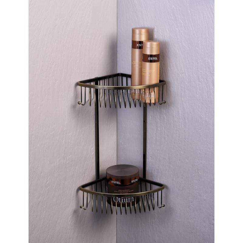 Полка металлическая угловая Fixsen FX-858-2 двухэтажная в лаконичном дизайне, которая подойдет к любому современному интерьеру ванной комнаты.