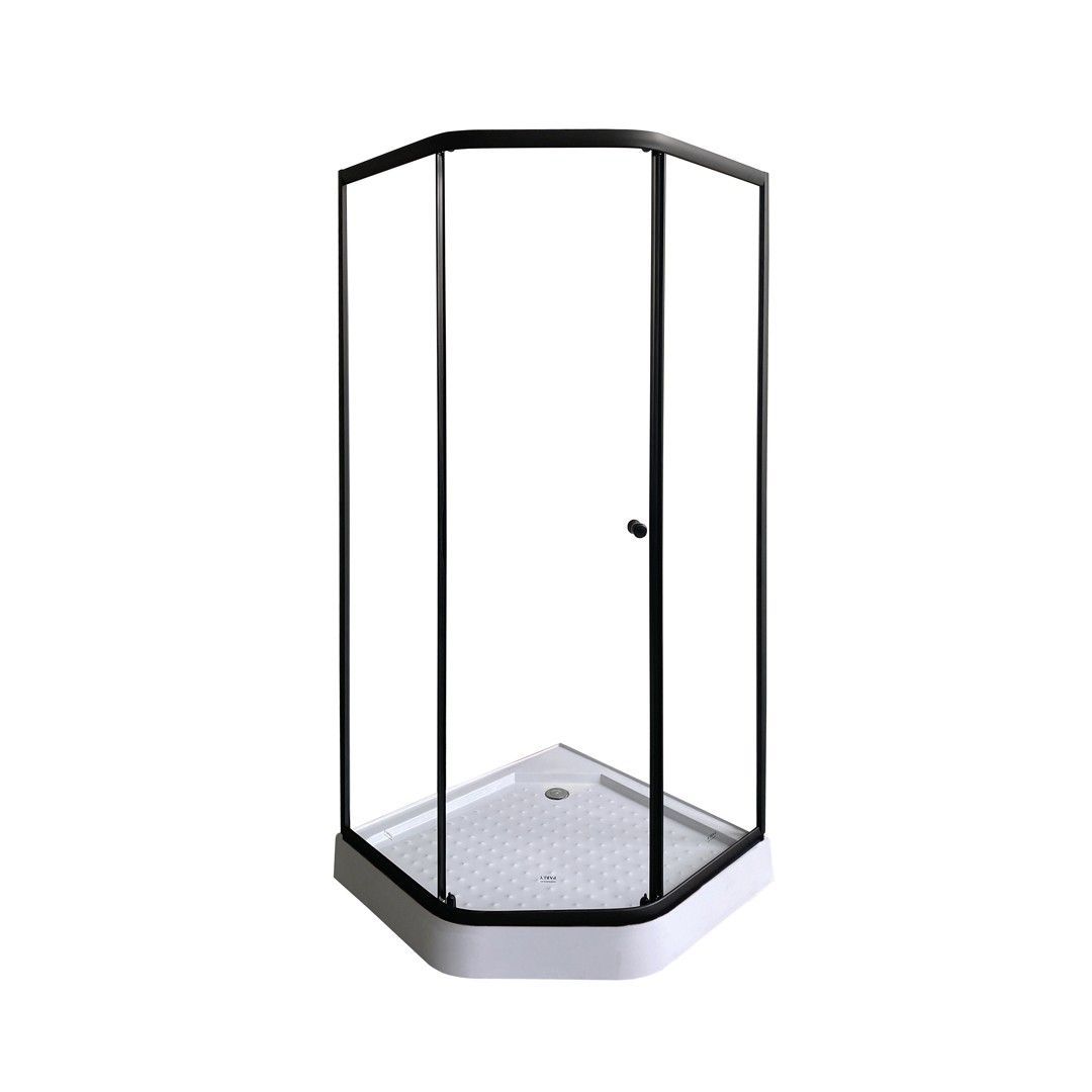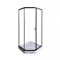 Черный профиль и прозрачное стекло придают уголку визуальную невесомость. Благодаря универсальному дизайну, уголок не будет перетягивать на себя внимание от общей идеи оформления ванной. За счет трапециевидной формы модель занимает мало места, но внутри комфортно принимать душ.