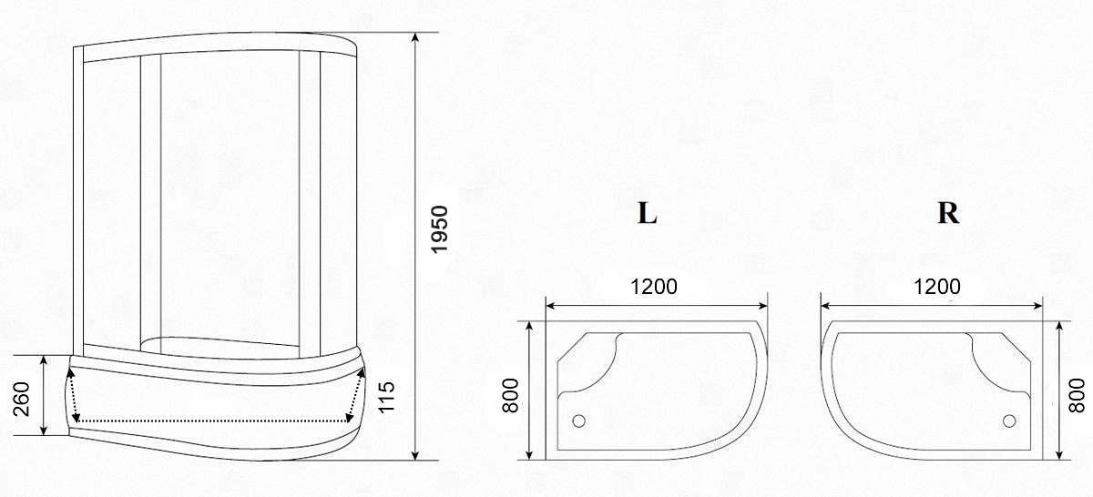 Уголок ZFM1201L душевой PARLY с поддоном (120х80х195)