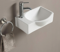 Чаша раковины справа, отверстие под смеситель слева