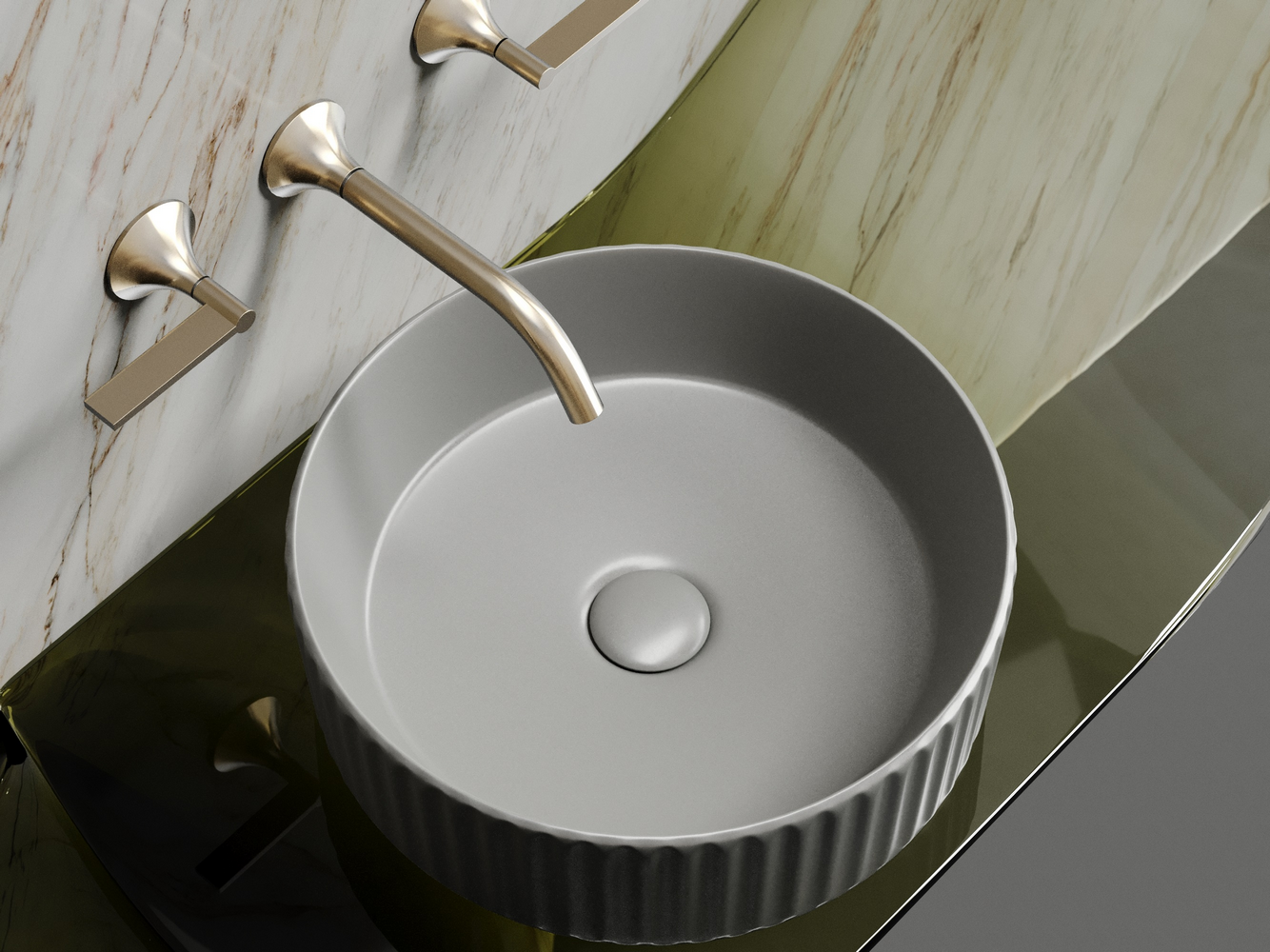 Умывальник чаша накладная круглая (цвет Антрацит Матовый) Элемент (Element) 360x360x115мм