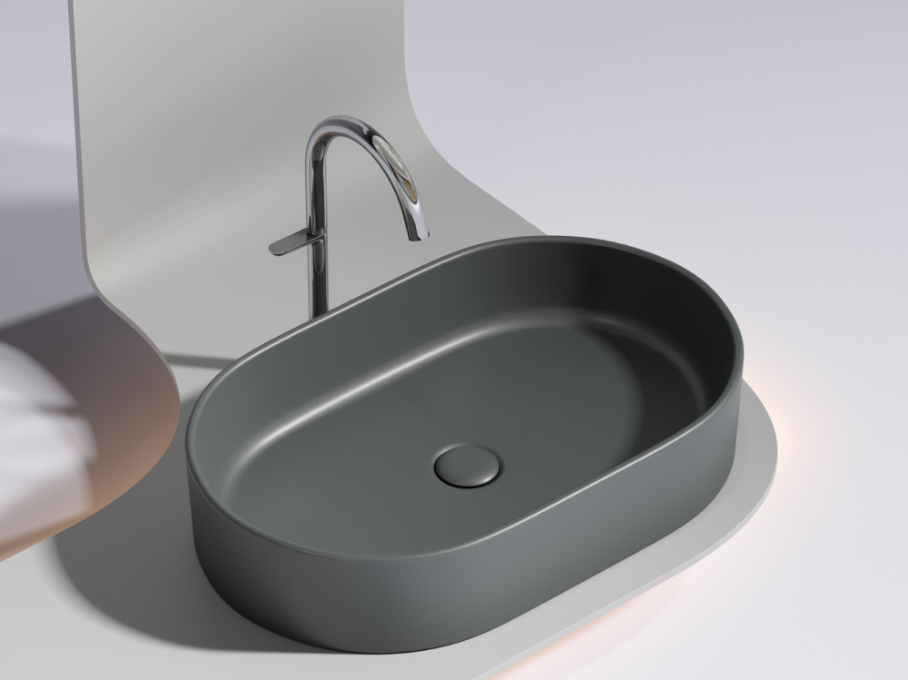 Умывальник чаша накладная овальная (цвет Темный Антрацит Матовый) Элемент (Element) 608x385x122мм