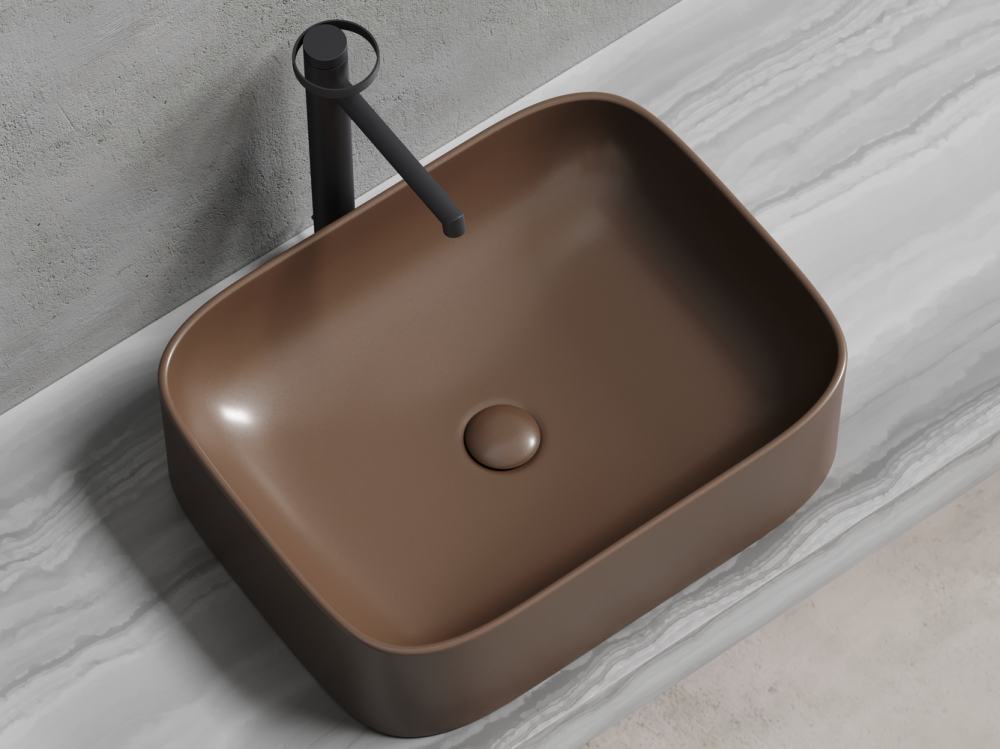 Умывальник чаша накладная прямоугольная (цвет Темно-Коричневый Матовый) Элемент (Element) 505x380x150мм