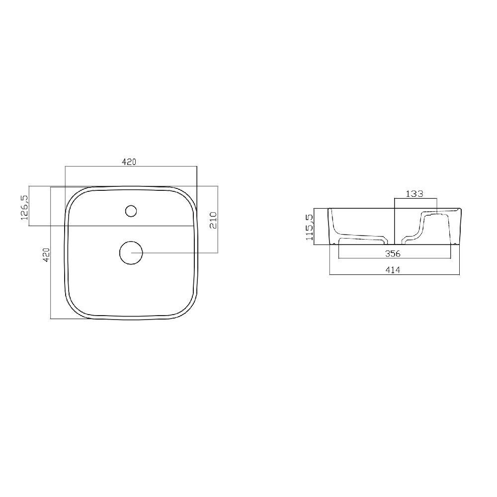 Умывальник GURAL Nova 42х42 накладной с отв. под смеситель
