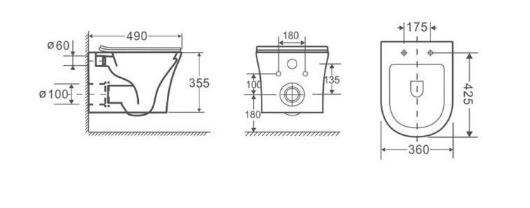 Антивсплеск обеспечивается конструкцией чаши (воронкообразной). Каскадная система слива омывает всю внутреннюю поверхность чаши. Это обеспечивает качественное очищение.