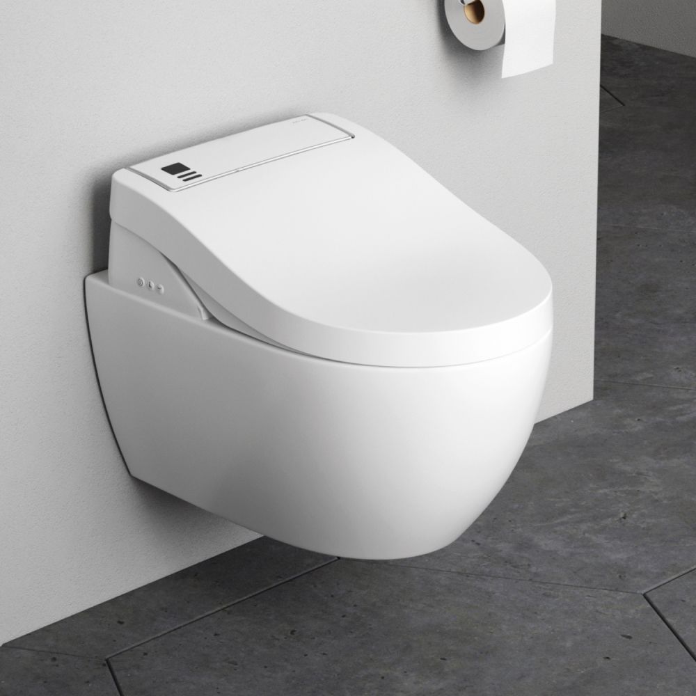 Крышка-биде идеально сочетается по форме с керамикой Awe