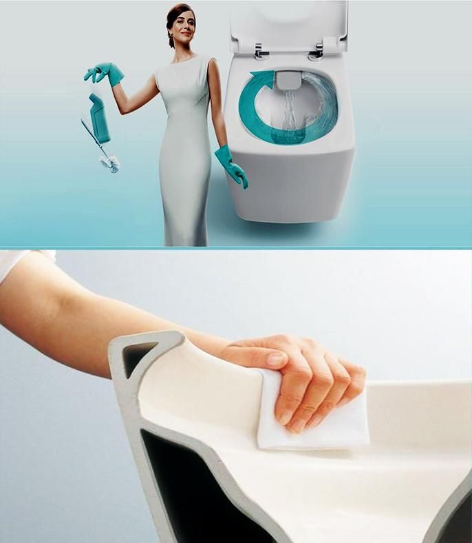 - Безободковый унитаз с идеально гладкой чашей с технологией Rim-Ex на 95% гигиеничнее стандартных унитазов.