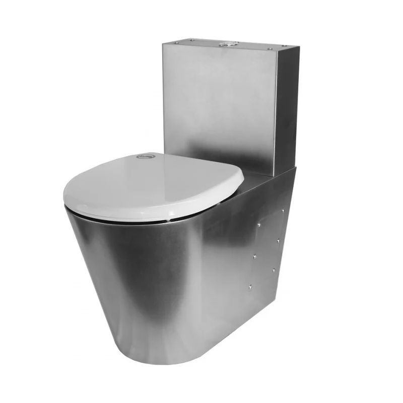 Напольный унитаз из нержавеющей стали AISI 304 повторяет конструкцию стандартного керамического унитаза. Имеет матовую, шлифованную поверхность и полированную чашу. Цвет - нержавеющая сталь (сатин). Арматура с/б УКЛАД (Псков) н/п АБ 69.57.14.3 кнопка сатин. Сиденье для унитаза УКЛАД СУ.81.18(05)"РЕССА" белое, пластик.