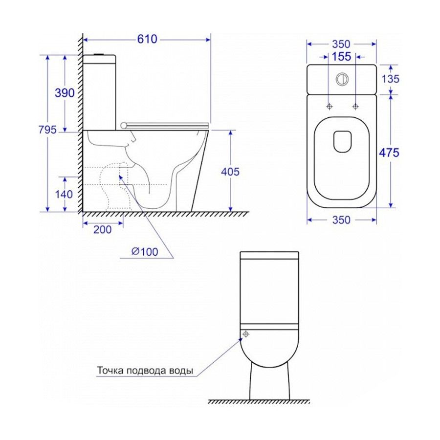 Унитаз-компакт EKO, 101-EKO05. Размер: 610x405x795 мм. Безободковый. Цвет белый. Сиденье дюропласт с функцией плавного закрывания Soft Close, легкосъемное. 2-режимная сливная арматура 3/6 л. Система антивсплеск. Комплект крепления.
