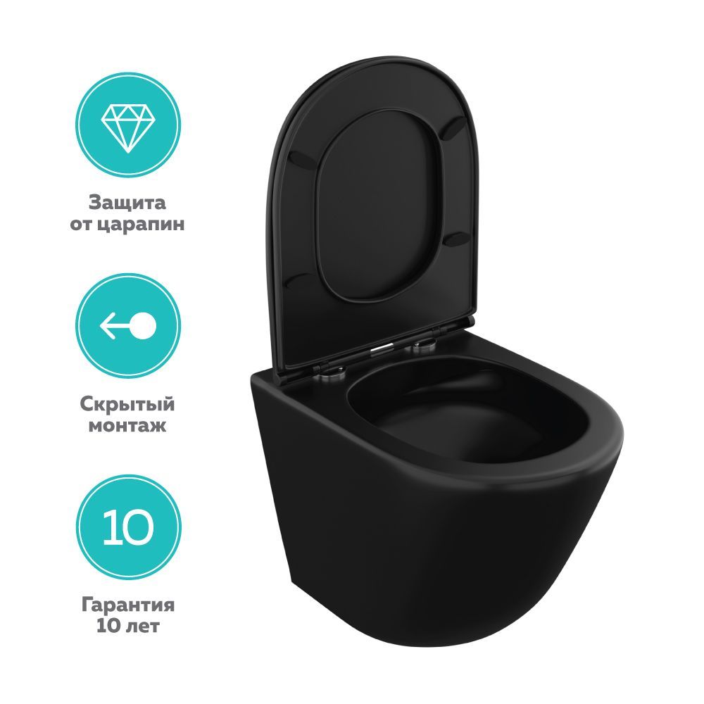 Подвесной безободковый унитаз Owl 1975 Vind Ruta-H OWLT190304 с сиденьем soft-close.