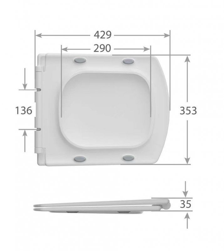• Жесткая крышка-сиденье из дюропласта, быстросъёмная, с механизмом Soft Close