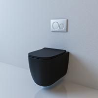 БЕЗОБОДКОВЫЙ подвесной унитаз. Горизонтальный выпуск ("P-Trap" 180 мм). Цвет: чёрный матовый. Сидение: ультратонкое, быстросъёмное, дюропласт с металлическим крепежом и микролифтом (механизм "Soft Close").