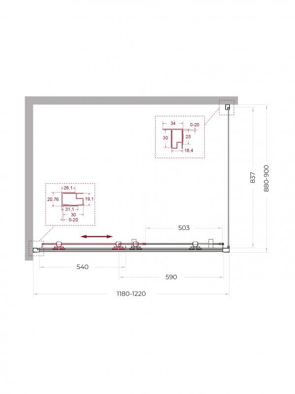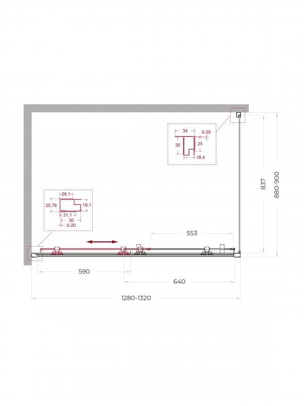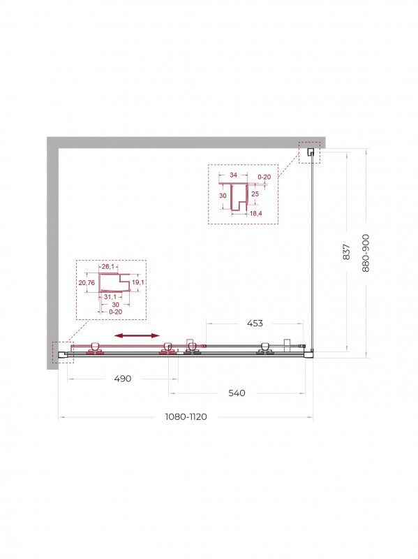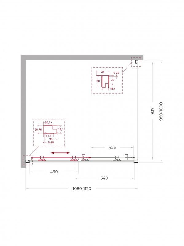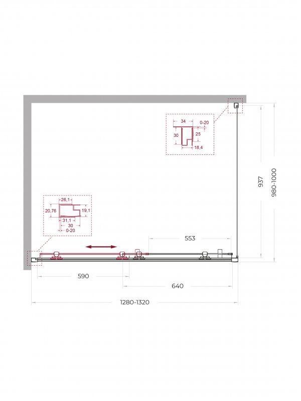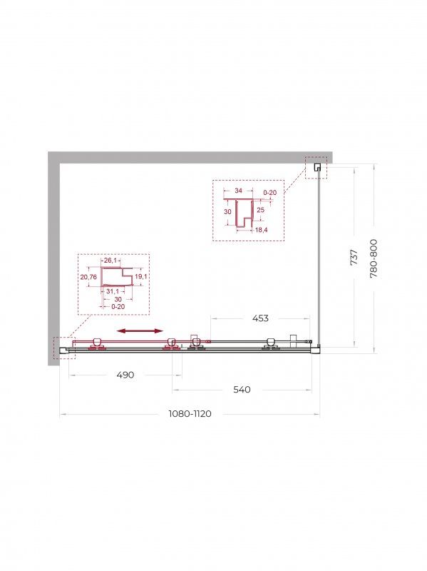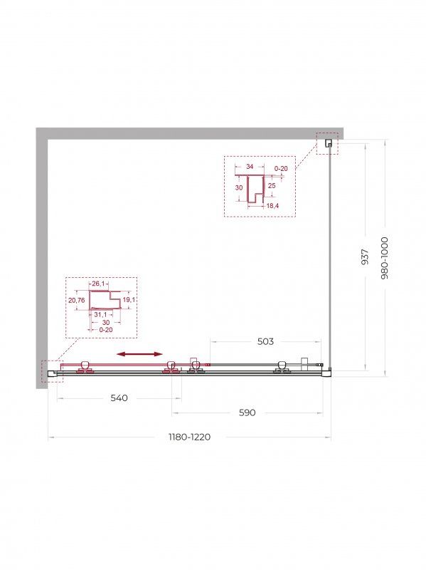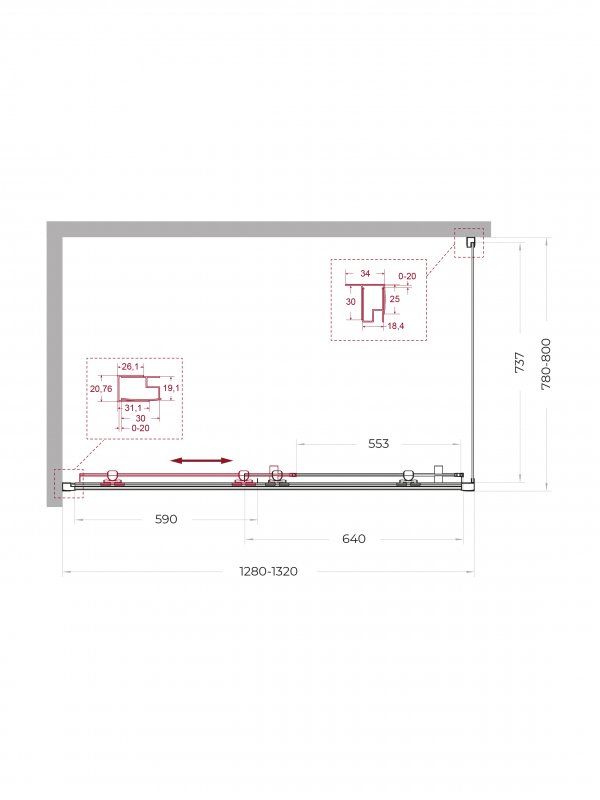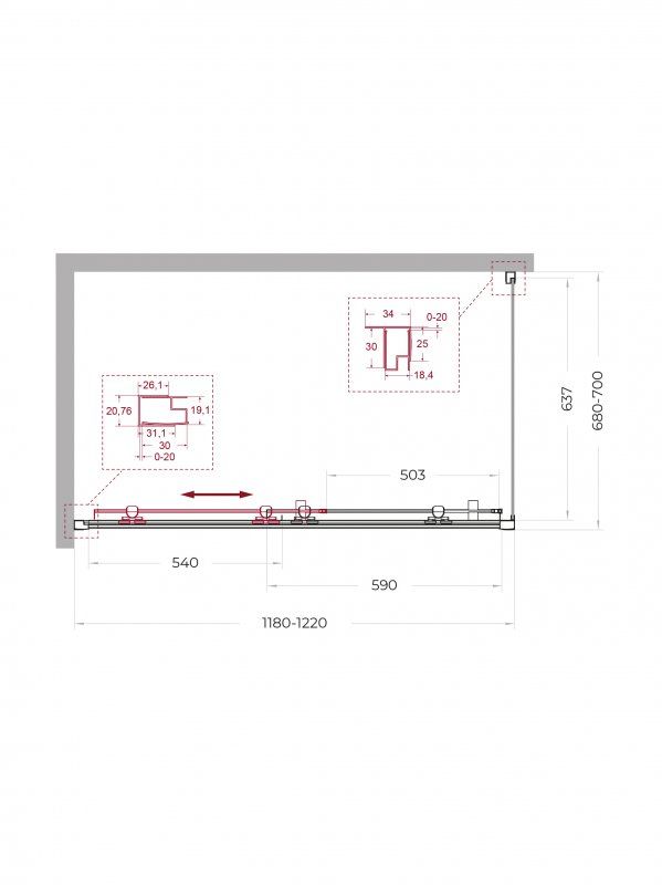 Регулировка ширины: предусмотрена за счет боковых профилей
