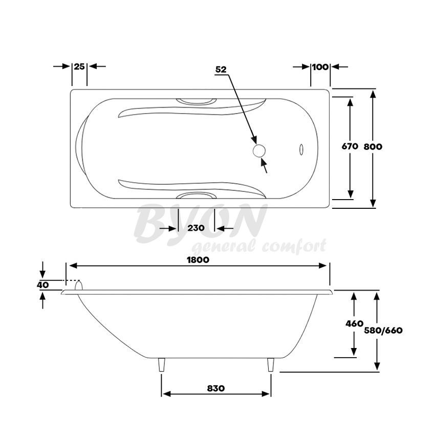 Белая чугунная ванна с гладким и ровным покрытием высокопрочной стекловидной эмали класса "А+". Благодаря составу эмали, ванна обладает антибактериальным свойством. В комплекте хромированные латунные ручки размером 23 см. У ванны присутствуют подлокотники и подголовник. Толщина чугуна 1.5 см. Материал - высокопрочный чугун с добавлением шаровидного графита. С графитом чугун становится очень прочным, поэтому при правильной эксплуатации ванна прослужит минимум 25 лет. Byon Christa 180x80 покрывается белоснежной эмалью в три слоя.