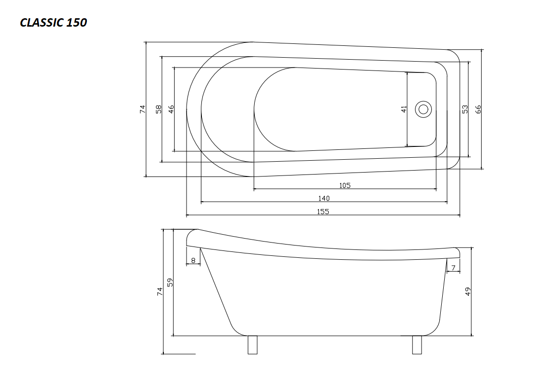 Ванна CLASSIC выполнена из качественного акрила, который хорошо сохраняет тепло и тактильно приятен. Завышенная спинка ванны обеспечивает максимально удобное положение тела во время водных процедур.