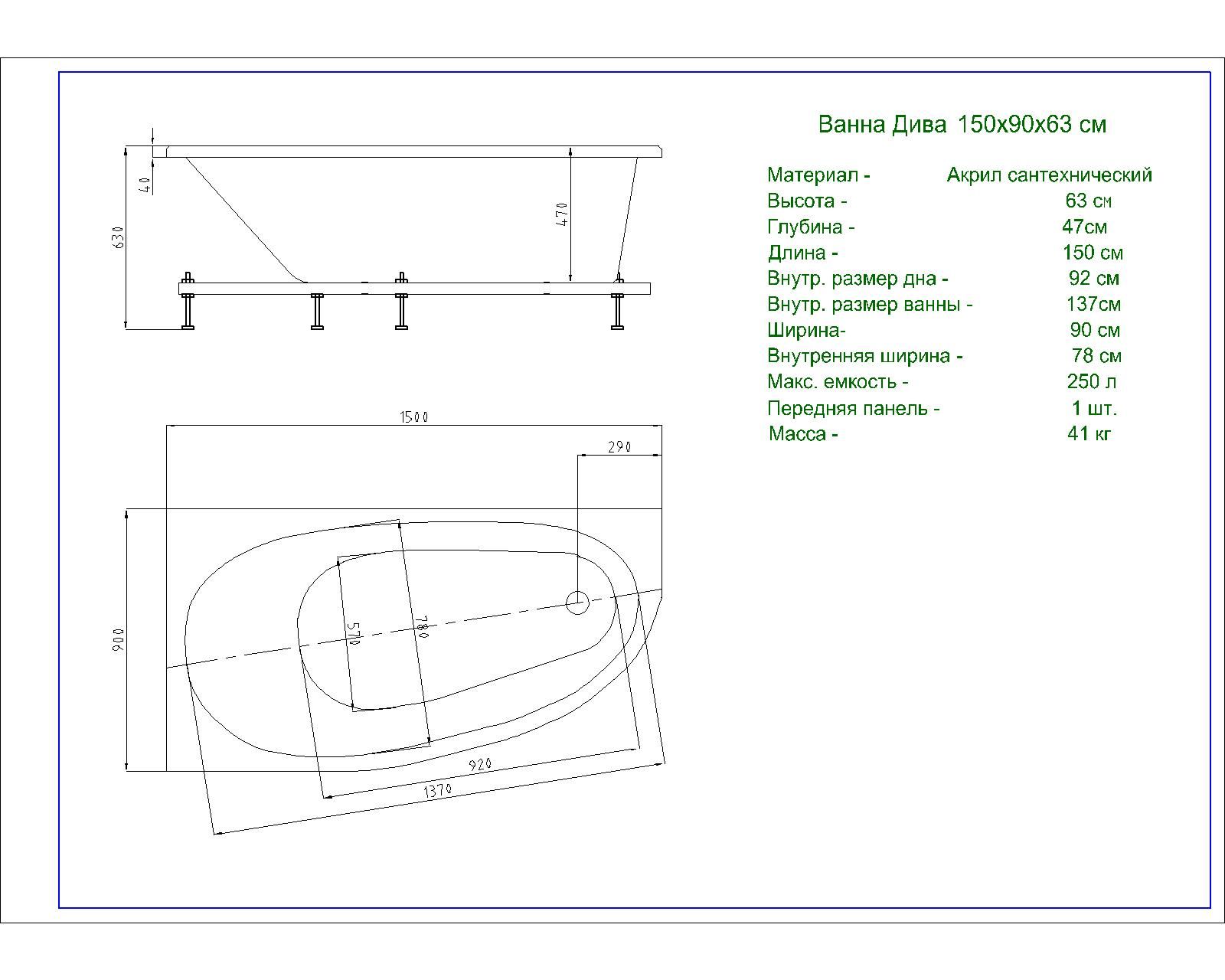 • ванна акриловая • каркас (или универсальная опора), слив-перелив, фронтальный и боковой экраны в комплект не входят и поставляются отдельно • установка гидромассажного оборудования не предусмотрена |