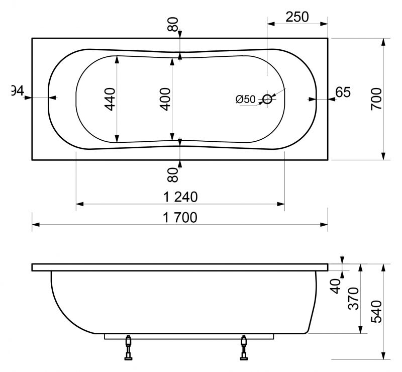 Ванна из искусственного камня Эстет Лаура 170x70.