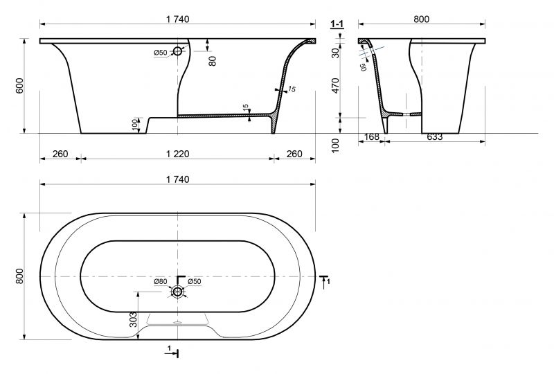 Ванна из искусственного камня Эстет Лион 174x80 оригинальной формы.