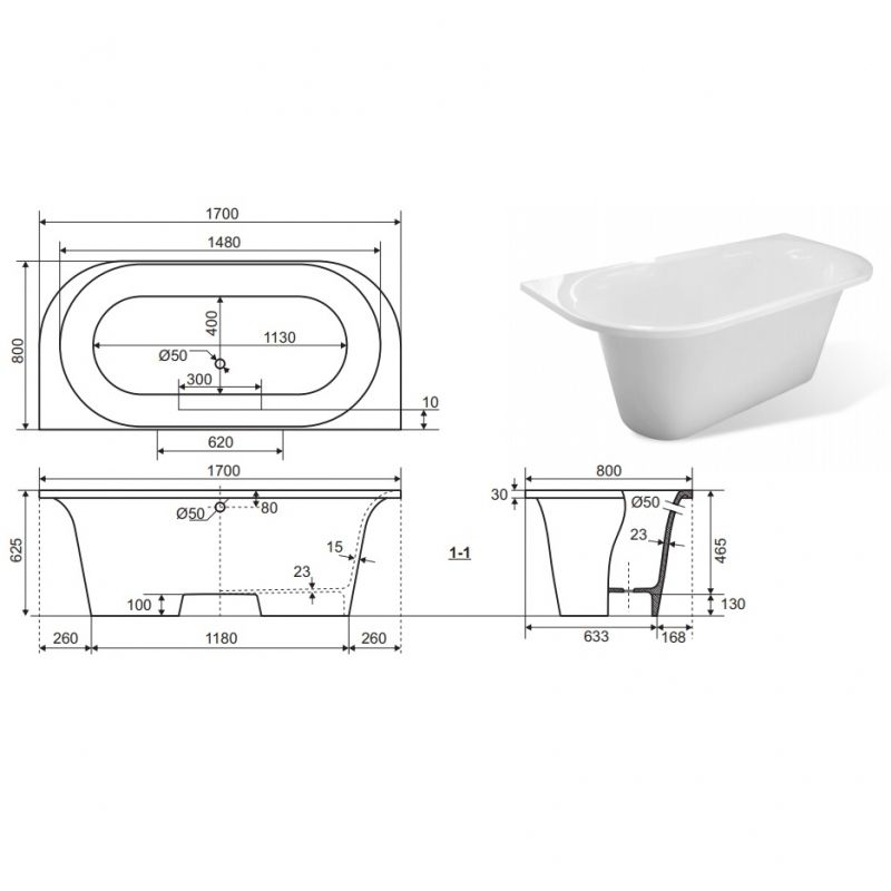 В комплекте поставки белая чаша ванны.