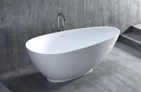Отдельностоящая ванна с изящным ассиметричным дизайном. Эстетичная и функциональная форма, не обременённая избыточными деталями, создаёт уют и гармонию в ванной комнате.