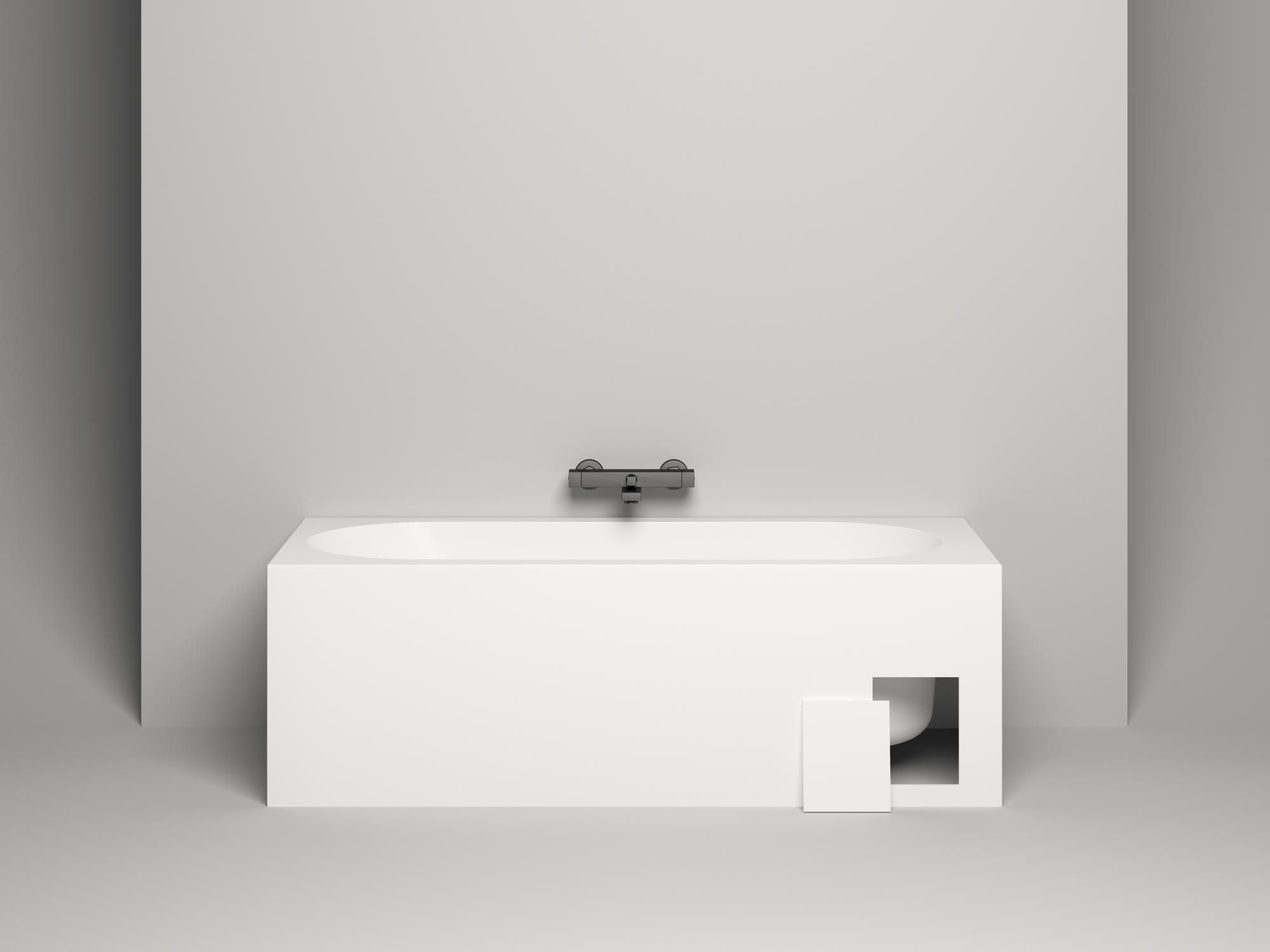 ORNELLA КIТ - это встраиваемая ванна с овальной округлой чашей, которая идеально вписывается в пространство от стены до стены в ванных комнатах небольших размеров.