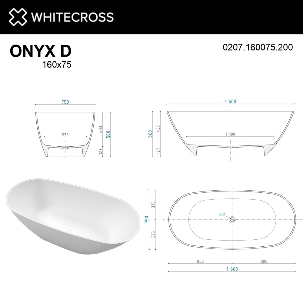Ванна WHITECROSS Onyx D 160x75 (белый мат) иск. камень