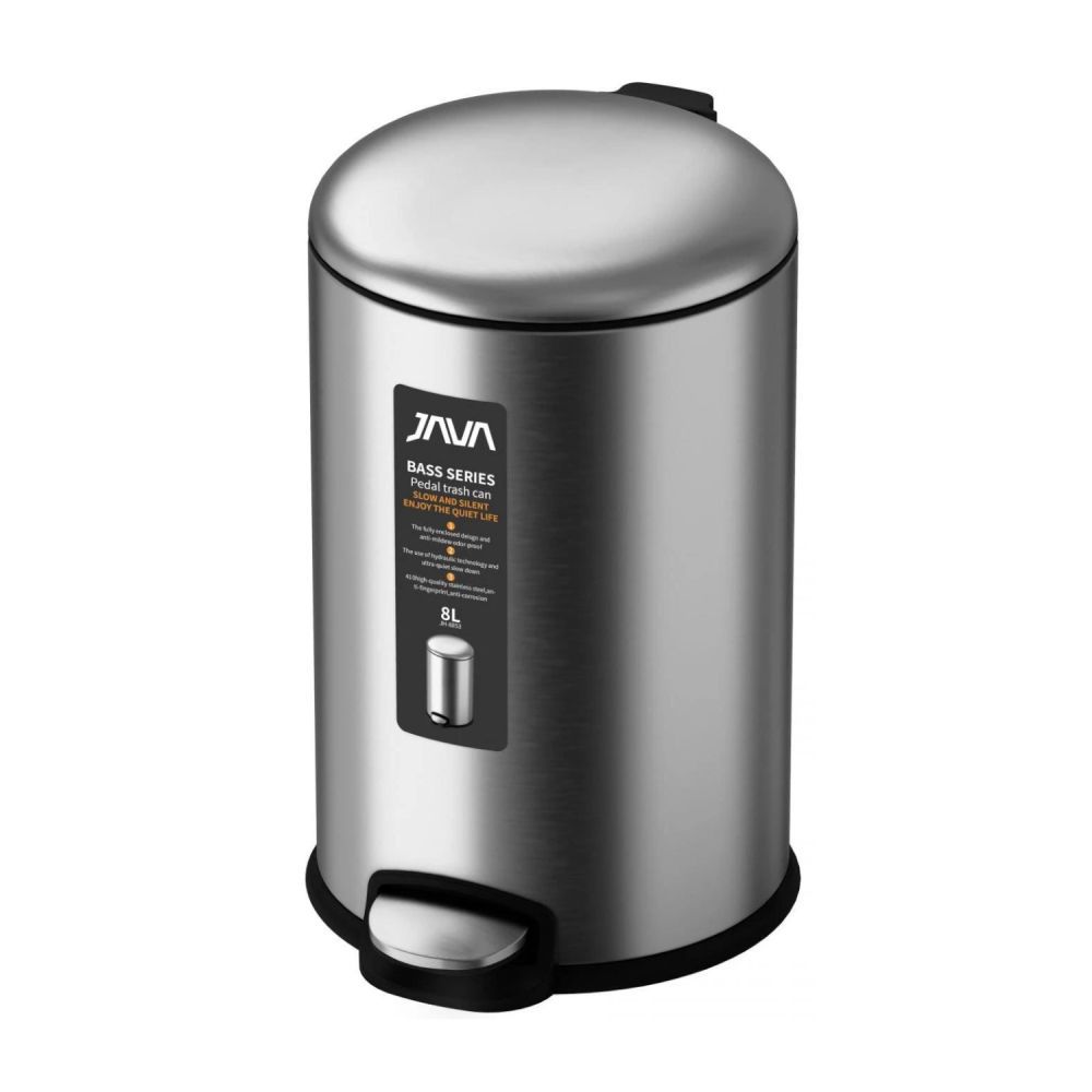 Ведро с микролифтом JAVA S-885-8L, 8 литров. Выполнено из нержавеющей стали. Функция "микролифт" позволяет крышке ведра опускаться плавно и бесшумно. Подходит для использования в любом помещении (ванная или туалетная комната, кухня, офис и т. п.).