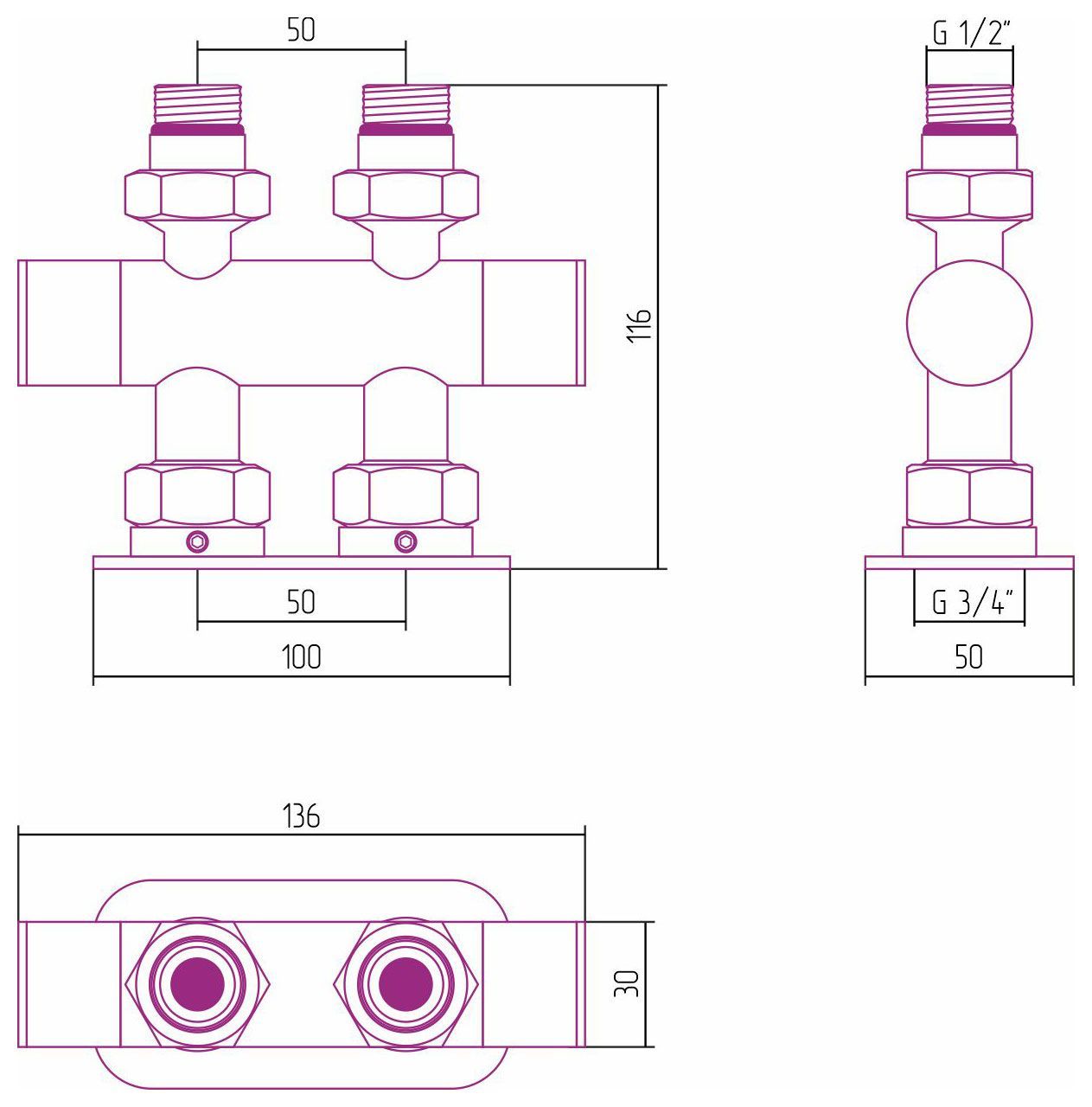 2 х НР G 1/2" / 2 х НГ G 3/4"