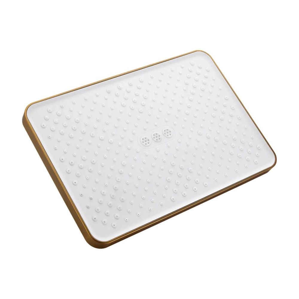 Верхний (тропический) душ BELZ BD02-5 в цвете "брашированное золото" — это стильное и функциональное решение для вашей ванной комнаты. С современным дизайном и прямоугольной формой размером 305х205 мм, этот душ не только обеспечит комфортное принятие водных процедур, но и станет элегантным дополнением к интерьеру. Изготовленный из прочного ABS-пластика, он отличается долговечностью и устойчивостью к повреждениям. Силиконовые форсунки облегчают очистку от известкового налёта, сохраняя эффективность и внешний вид устройства на долгие годы. В комплекте с душем идёт шарнир, который позволяет регулировать угол наклона вдоль всей оси, обеспечивая максимальный комфорт при использовании. Стандарт подключения 1/2" делает верхний душ BELZ совместимым с большинством современных душевых систем и кронштейнов, что обеспечивает удобство при установке и использовании.