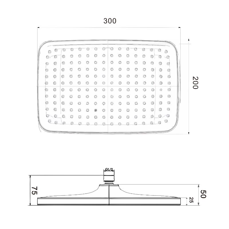 Верхний душ D-Lin подойдет для любого соединения на 1/2". Оснащается шарнирным подключением для возможности расположить лейку под необходимым углом.