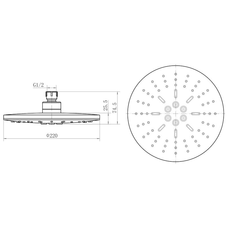 Размер верхнего душа, см