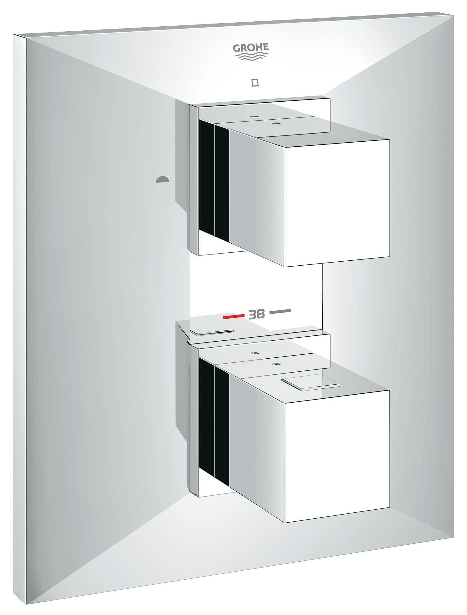 С его квадратными рукоятками и гранями корпуса, сверкающий термостатический смеситель для душа Allure выглядит блестяще на стене. На этот термостат приятно смотреть, а также он практичен и безопасен в использовании. Металлические рукоятки очень эргономичны, и даже если ваши руки в мыле, вы легко и точно настроите термостат. Благодаря GROHE EasyLogic он невероятно прост в использовании, а функция AquaDimmer позволяет легко переключаться между ванной и душем, или верхним душем и ручным душем. Смеситель оснащен функцией SafeStop Plus, это двойная система защиты от слишком горячей воды. Технология TurboStat® гарантирует, что температура воды будет соответствовать желаемой в мгновение ока, компенсируя изменения давления в системе водоснабжения, обеспечивая постоянный поток воды заданной температуры. Термостат выполнен в сияющем хромовом покрытии GROHE StarLight®, этот смеситель сияет как бриллиант.