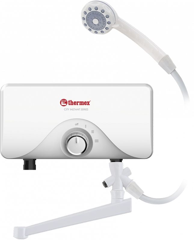 Электрический проточный водонагреватель Thermex City 3500 211 004 для работы с одной точкой водозабора, в комплекте со смесителем и душевым гарнитуром. Мгновенная подача горячей воды. Легко поместится в ванной или на кухне любых размеров. Возможна установка как над, так и под раковиной. Предусмотрены все системы для безопасной эксплуатации. Надежная работа нагревательного элемента из высококачественной меди. Простая установка не требующая специалистов. Три режима мощности, переключаемые механическим регулятором.
