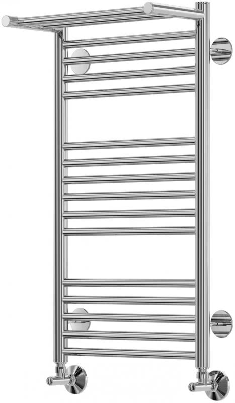 Водяной полотенцесушитель Terminus Аврора П16 400x780 4660059582351 с полкой, с нижним подключением. Для производства полотенцесушителя используется только высококачественная нержавеющая сталь марки AISI 304L с высоким содержанием легирующих элементов, Ni и Cr, это позволяет изделиям сохранять стойкость к агрессивным коррозийным средам, что существенно продлевает срок их эксплуатации. Толщина стенки используемой трубы не менее 2 мм, это обеспечивает 10-ти кратный запас прочности, труба устойчива к резким перепадам давления в системе водоснабжения!