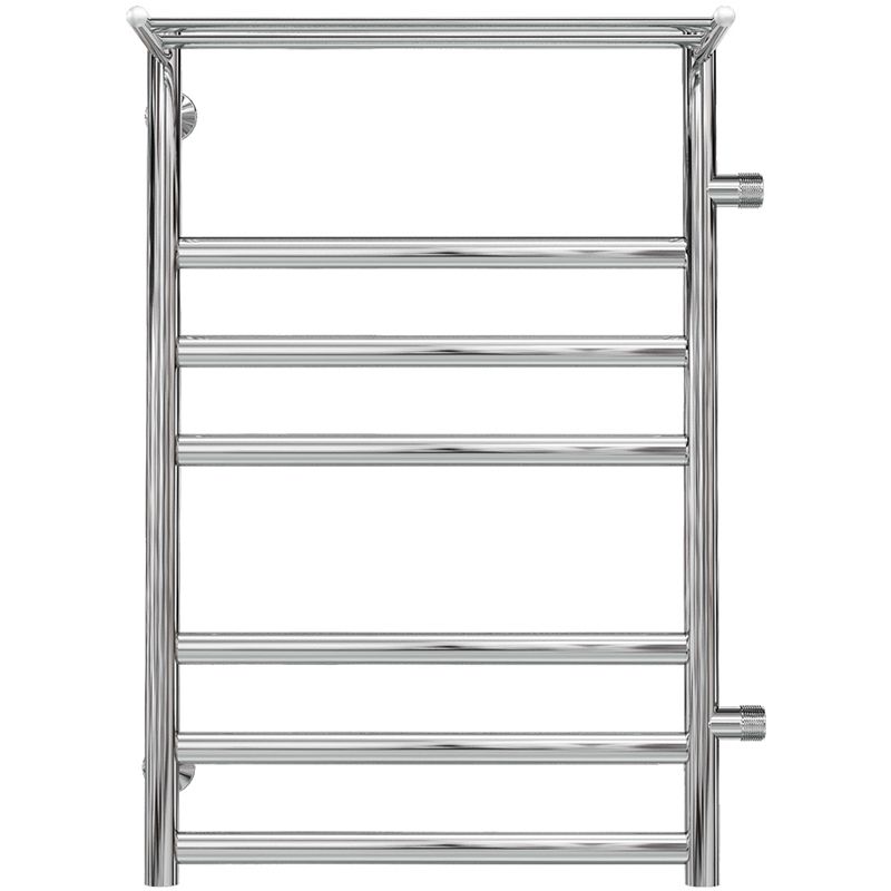 Водяной полотенцесушитель Terminus Хендрикс П7 500x796 4620768888823 с полкой, с боковым подключением. Для производства полотенцесушителя используется только высококачественная нержавеющая сталь марки AISI 304L с высоким содержанием легирующих элементов, Ni и Cr, это позволяет изделиям сохранять стойкость к агрессивным коррозийным средам, что существенно продлевает срок их эксплуатации. Толщина стенки используемой трубы не менее 2 мм, это обеспечивает 10-ти кратный запас прочности, труба устойчива к резким перепадам давления в системе водоснабжения!