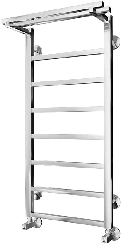 Водяной полотенцесушитель Terminus Контур П8 400х900 4660059582481 с полкой, с нижним подключением. Для производства полотенцесушителя используется только высококачественная нержавеющая сталь марки AISI 304L с высоким содержанием легирующих элементов, Ni и Cr, это позволяет изделиям сохранять стойкость к агрессивным коррозийным средам, что существенно продлевает срок их эксплуатации. Толщина стенки используемой трубы не менее 2 мм, это обеспечивает 10-ти кратный запас прочности, труба устойчива к резким перепадам давления в системе водоснабжения!