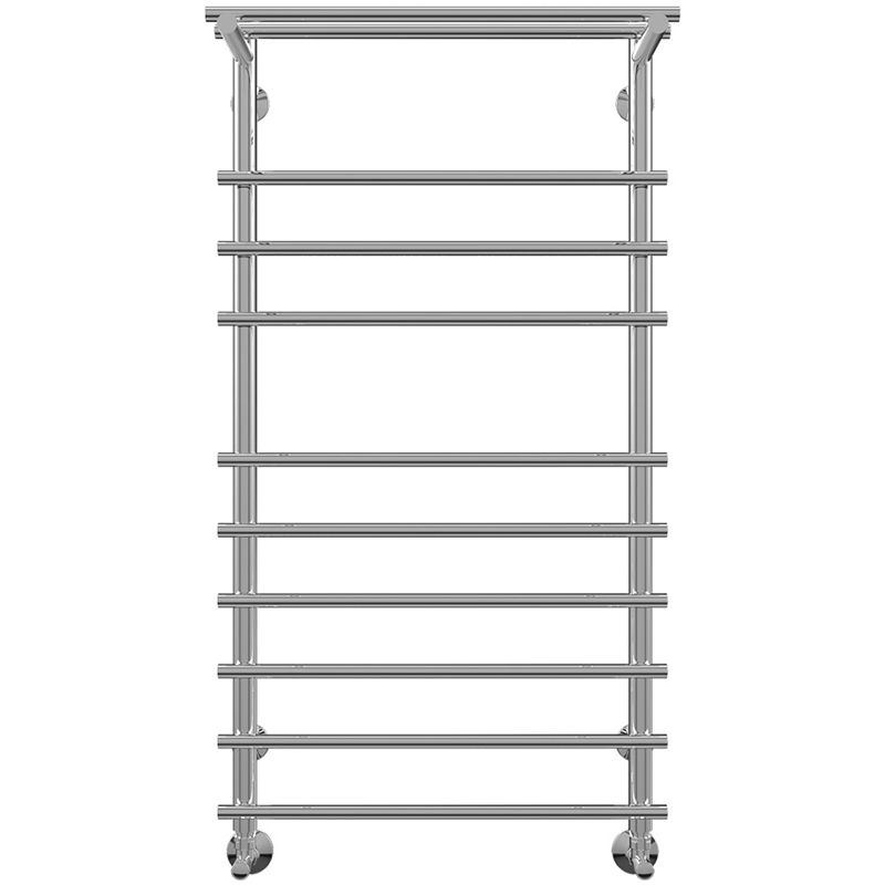Водяной полотенцесушитель Terminus Ватра П10 500x996 4670030723970 с полкой, с нижним подключением. Для производства полотенцесушителя используется только высококачественная нержавеющая сталь марки AISI 304L с высоким содержанием легирующих элементов, Ni и Cr, это позволяет изделиям сохранять стойкость к агрессивным коррозийным средам, что существенно продлевает срок их эксплуатации. Толщина стенки используемой трубы не менее 2 мм, это обеспечивает 10-ти кратный запас прочности, труба устойчива к резким перепадам давления в системе водоснабжения!