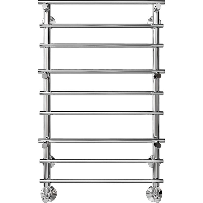 Водяной полотенцесушитель Terminus Вента П9 500x835 4670030723918 с нижним подключением. Для производства полотенцесушителя используется только высококачественная нержавеющая сталь марки AISI 304L с высоким содержанием легирующих элементов, Ni и Cr, это позволяет изделиям сохранять стойкость к агрессивным коррозийным средам, что существенно продлевает срок их эксплуатации. Толщина стенки используемой трубы не менее 2 мм, это обеспечивает 10-ти кратный запас прочности, труба устойчива к резким перепадам давления в системе водоснабжения!